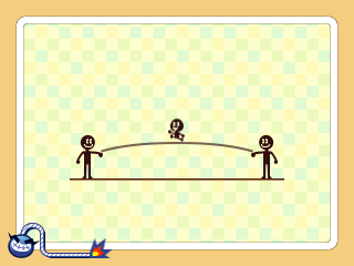 The player's character has to jump over a jump rope held by two characters up until the time limit expires. If successful, the player wins at the microgame, but if the character trips on the jump rope, the player loses at the microgame.