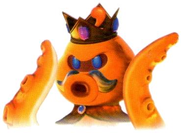 He is an giant, orange Octoomba with blue eyes, said to be the ruler of the Octoombas, and he has multiple tentacles which can be used to deflect stuff. He wears a crown & a neckerchief. His rematch paints him with black skin and red eyes.