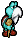 Kuzzle has light blue skin, a gray mustache and beard to indicate that he is old, and wears a red shell.