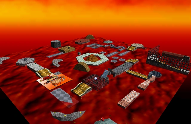 In Super Mario 64 and Super Mario 64 DS, Lava appears mainly on Lethal Lava Land and in Bowser in the Fire Sea in these games. If a character falls in the lava, they will lose three out of eight health points however if said character is capless, they lose four points of health. Lava is also used to defeat Bullies. On lava bridges, Podoboos tend to hop out of the lava bouncing along the bridge before dunking back into the lava on the other side. In some cases, Flamethrowers are also submerged beneath the lava shooting their flame jets periodically. If a Shell is used, one can surf over the lava without being scorched. If Mario touches lava as Metal Mario, he will still bounce in the air as if he touched it normally but won't take any damage. In the remake, this has been changed, if Metal Wario is to fall into lava, he will start slowly sinking into it (similar to the quicksand in the pyramid of Shifting Sand Land) and if he doesn't jump back out in time, he will be submerged and die.