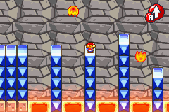 Lava appears again in Super Mario Bros. 3 being a common obstacle in the Fortresses, just as before, Podoboos are seen hopping out of the lava, lava can also be found on the ceilings of each level. Just as before, touching either type of lava will instantly kill Mario.