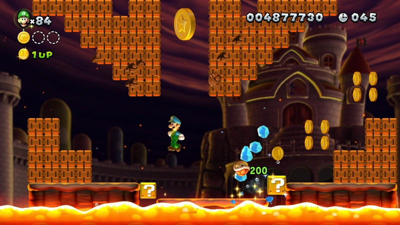 Magma Moat is the first level of Peach's Castle in New Super Luigi U. It is unlocked from completing Bowser Jr. Showdown and its own completion unlocks Magmaw River Cruise. It has a secret exit that leads to Firefall Rising.