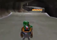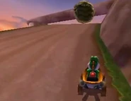 Like Wuhu Loop and Rainbow Road in this game, this track does not go by the lap rules, but rather is split into three parts. The first one to reach the finish line (at the end-point, considering this course doesn't have laps) wins first.