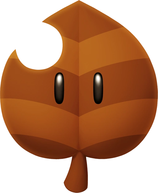 - Super Leaf: A tail appears behind the user's kart, allowing them to deflect items, hit opponents and gather coins. The tail disappears after a moment or if the user is attacked.