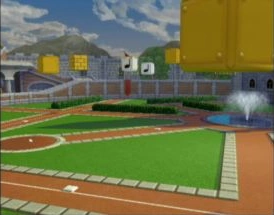 A courtyard ball park just outside Peach's Castle. Blocks float high above the fielders in this ball park. When a fly ball hits one of these blocks the ball will bounce and fly to a random direction. Brick Blocks can be destroyed while Jump Blocks cannot be destroyed. Blocks also give out Star Skills when hit. |