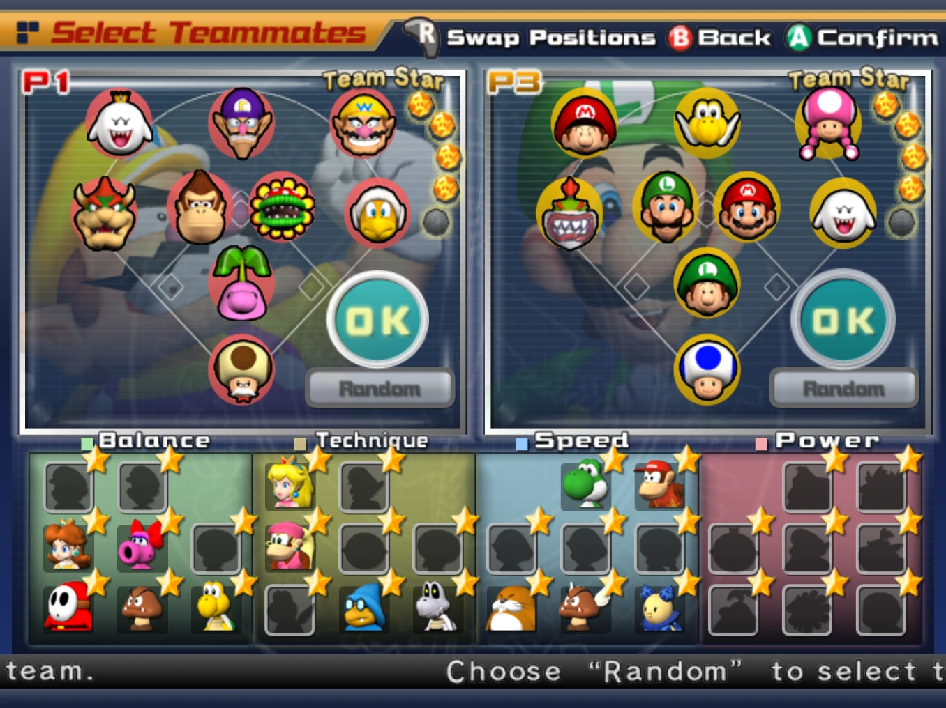 The only exception is Donkey Kong's team, with all his teammates needing only one scout flag on the mushroom level, 2 on the flower and star levels, and 3 on the special level. Bowser's team cannot be recruited due to no scout flags; the only way to do so is when Bowser is selected as a challenge mode captain. When Bowser is chosen, the team players require the same number of flags as the captain when he is not chosen. Before the match, the opposing team's has the message "Round up Players" on their batting order screen. The order of the opposing team is random as well as the fielding position, with the exception of Bowser's team, whose batting order and fielding positions remain the same. Players from other teams can be recruited after clearing certain missions. When the player recruits the captain they are not able to recruit other characters on their team unless the player faces Bowser Jr.