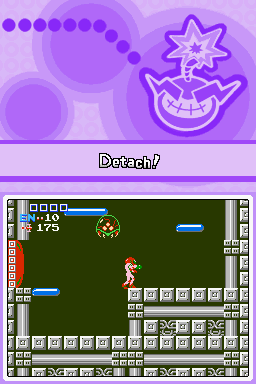 The objective is to use the Stylus to drag the Metroids away from Samus Aran, who is either wearing the Power Suit or is suitless. The first difficulty level has only one Metroid while the other two difficulty levels feature two and three Metroids, respectively. A minimum of twenty points must be attained to complete the microgame successfully.