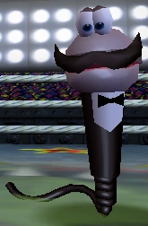 Microbuffer is a sentient microphone that has a mustache and a tuxedo.