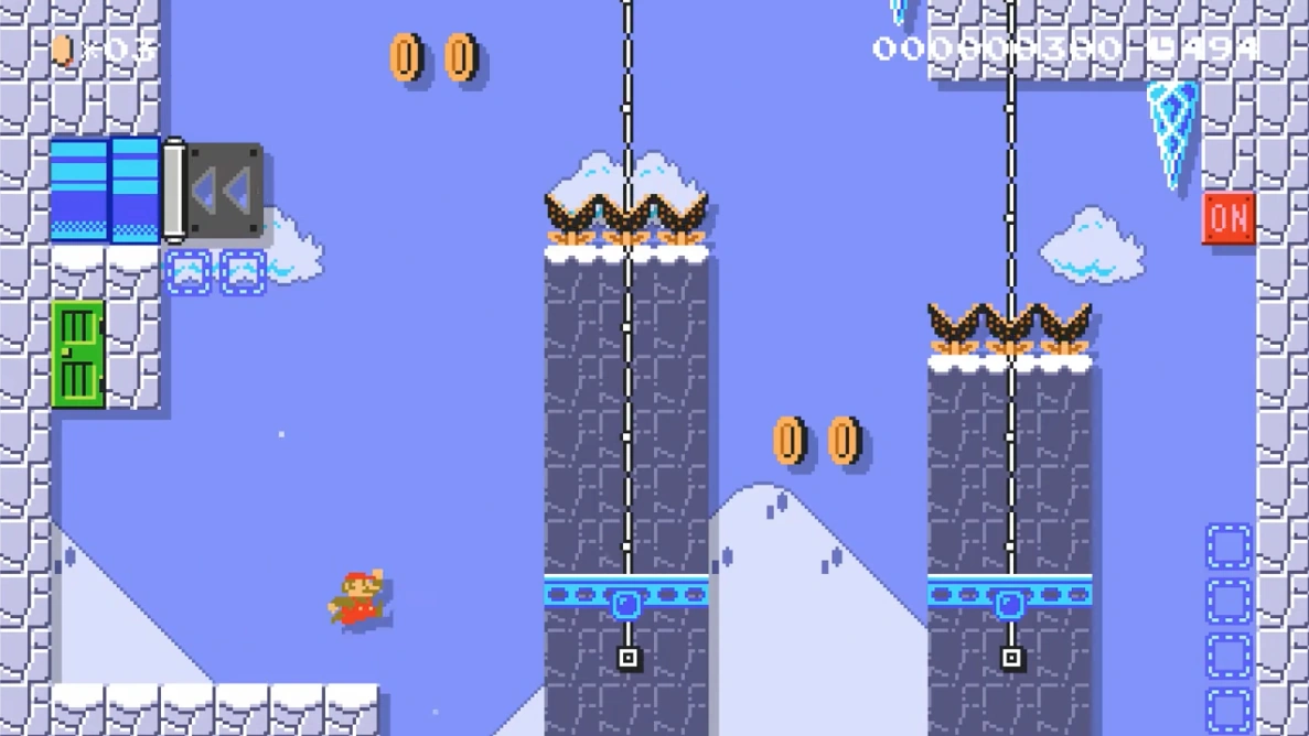 Ice Land also has Munchers that are frozen in ice cubes. While frozen, Munchers are perfectly harmless but if the plumbers are to hit the frozen Muncher with a Fireball while under the effects of a Fire Flower, the Muncher will be thawed out and become a harmful enemy. If a P-Switch is hit, all Munchers will briefly turn into Coins and if collected, the Munchers disappear, if Mario/Luigi tail-whips one while under the effects of a Super Leaf or Tanooki Suit, the Muncher will become an Empty Block (however this only applies to the original as they are immune to this in Super Mario Advance 4: Super Mario Bros. 3).