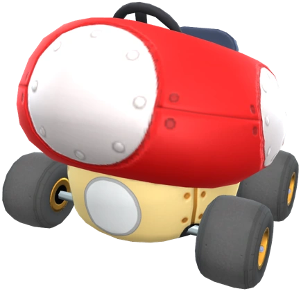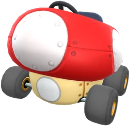 The kart itself seems to be similar to the Egg 1 as they both are a character's trademark as a kart itself. The kart appears to slightly resemble a Mushroom Car from Mario Kart: Double Dash!!, and is shaped like a Super Mushroom with small wheels.
