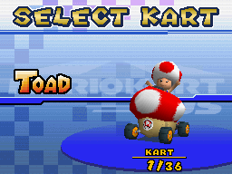Toad in his Mushmellow in Mario Kart DS.