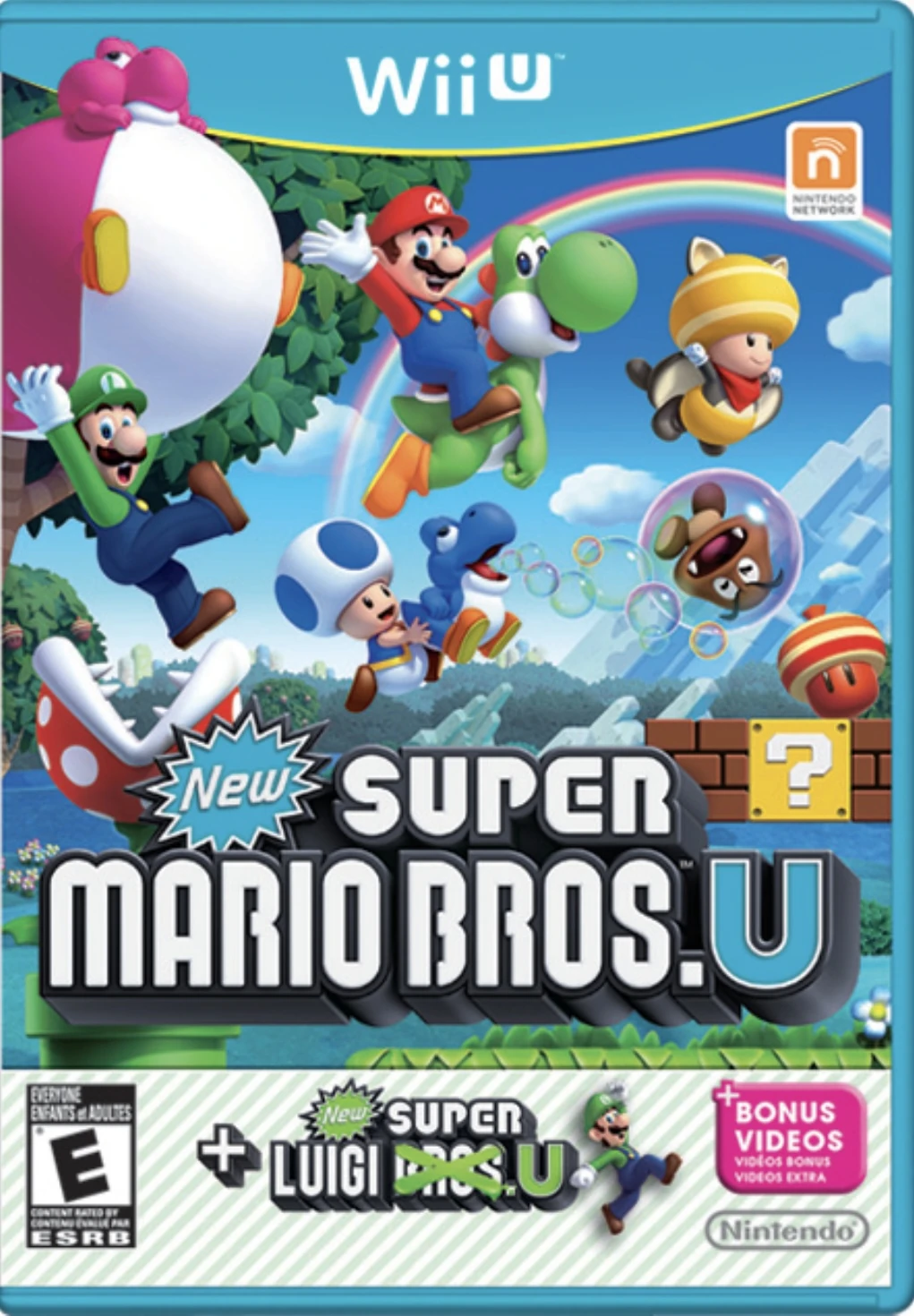 - The box art is identical to the New Super Mario Bros. U box art, but has a ribbon along the bottom has been added to incorporate the New Super Luigi U logo, in addition to a picture of Luigi.