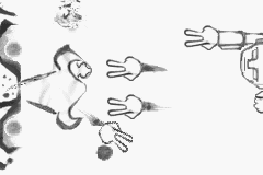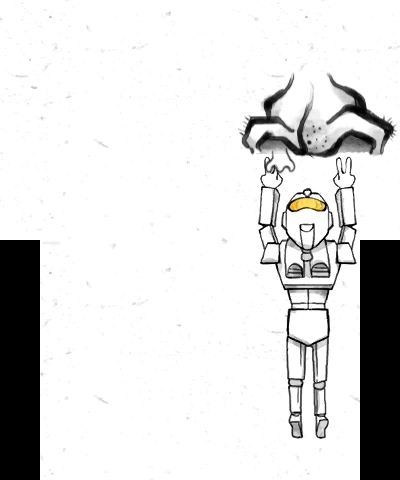 The player takes control of Handroid V, a robot whose attacks consist of firing two-finger hands as it moves left and right automatically. With his two-finger hands, Handroid V has to destroy the noses along the way until reaching the boss, which is a big face with two eyes and a nose. The nose attacks by launching wind out from its nostrils. To defeat it, Handroid V has to block its two nostrils using the hands. When it is plugged, the nose explodes, and the face reveals itself as a bigger nose that attacks with mini-noses. Handroid V eats a fruit to upgrade his form to now make use of both of his hands. This giant nose can be defeated after several shots, upon which the player wins the microgame. If Handroid V takes one hit, he is defeated.