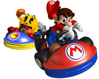 Mario Kart Arcade GP artwork of Mario and PAC-MAN racing