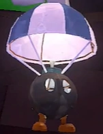 A Paper Macho Bob-omb is a type of Paper Macho Soldier and rare enemy in Paper Mario: The Origami King. They only appear in Hotfoot Crater alongside small Paper Macho Goombas and Paper Macho Lava Bubbles, collectively referred to as "Paper Macho Crater Crashers" in their Collectible Treasure name in the Musée Champignon. They parachute down from the top of the volcano; once they land, they act like regular Bob-ombs, chasing Mario and soon exploding. They can only be defeated by letting them self-destruct, as they are immune to the hammer. The resulting explosion is used to break any rocks blocking Mario's path, though it deals 15 HP damage to him if he is too close.