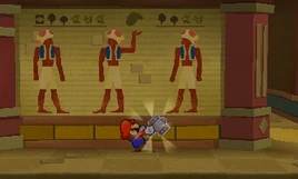 Peel allows the removal of Stickers that are usually stuck to surfaces. This ability is used by holding the "A" button. Peel is also used to remove Bowser Stickers which bind Toads and block certain pathways/shortcuts. Peel is often used in combination with Paperize. If Mario leaves a sticker for too long after peeling or enters another area without collecting then the sticker will disappear.