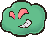 Poison Puffs are the most powerful and dangerous variant of Ruff Puffs. They only appear in the deepest levels of the Pit of 100 Trials, where they are fought several times. Poison Puffs fly very fast, and can charge themselves up for one of the most devastating attacks in the game, which is unleashing a lethal poison gas on Mario and his active partner, dealing 10 damage to both of them and poisoning them.