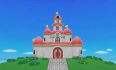 Princess Peach's Castle is first seen during the opening sequence, along with the Castle Grounds. In one part, the Party Cube briefly casts a shadow over the castle as it arrives. Princess Peach's Castle also appears in the background image of the mode select screen.