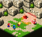 Psych Bomb is a special moved used by Princess Toadstool in the game Super Mario RPG: Legend of the Seven Stars. Toadstool learns this attack at Level 18 and this is her only offensive special attack. This move takes 15 FP to use. It was a good combination with Bowser Crush, Geno Blast or Geno Flash when using on boss battles, e.g. Culex.