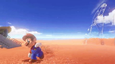 Mario rolling in the Sand Kingdom of Super Mario Odyssey