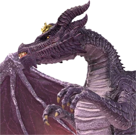 The patagia are dark purple at the top, gradually becoming red at the bottom. The body is fully covered by big scales, while its lower part until the head is covered by bigger plates and has a lighter pink color. The Ruined Dragon has a long neck and a head with a long muzzle.