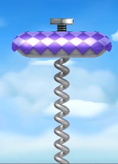A Screwtop Shroom is a type of Mushroom Platform with a purple cap and a screw on top of it. They are featured in sets, and Mario or another playable character can spin on a Screwtop Shroom's screw to adjust the height of the other Screwtop Shrooms. If the player's character is not spinning the screw, a Screwtop Shroom slowly returns in the direction they came.