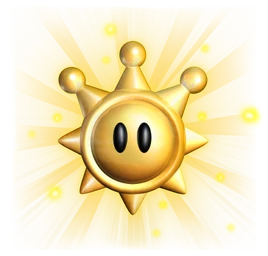 A Shine Sprite is an object that made its first and main appearance Super Mario Sunshine, but has since had many appearances in other Nintendo games. Shine Sprites bear a close resemblance to the sun and emit a strong yellow light that is said to act as a power source. They act as the guardians of Isle Delfino.