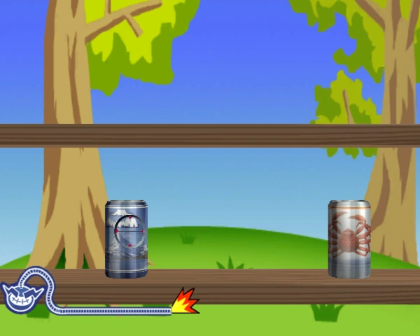 - Level 1: The player must shoot two cans.