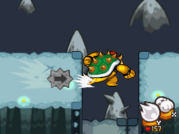 Bowser learns the Sliding Punch shortly after Mario and Luigi defeat the Durmite in his body. With the Sliding Punch, Bowser can slide forward, performing a charge with his right arm in front. With the Sliding Punch, Bowser can move across short gaps that he cannot break otherwise, and it also enables him to break certain large boulders.