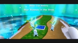 The Snow Cap Galaxy is a galaxy in Super Mario Galaxy. It is a galaxy that has Mario chase down Star Bunnies on a snow-covered planet. The Fire Flower makes an appearance in this galaxy. It is accessed via the Hungry Luma next to the Garden, which only appears after The Sinking Lava Spire has been completed.