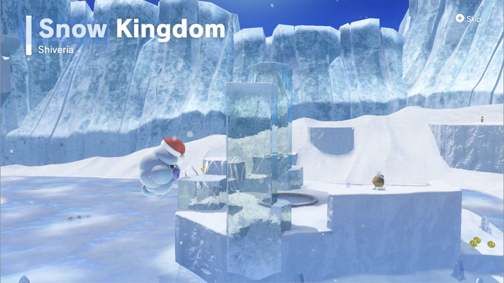 The Snow Kingdom (雪の国 Yuki no Kuni?, lit. Snow Country) is a location that appears in Super Mario Odyssey. It is a vast realm in the form of a snowflake. Its most notable city is Shiveria, which serves as the kingdom's main playable area in the game.