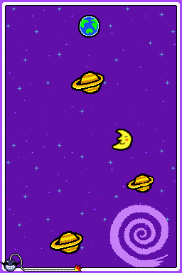The player must use their stylus to swirl the black hole so that the spaceships and planets are drawn into it. If done successfully, the player wins at the microgame, indicated by a mouth appearing over the black hole that belches and smiles. If the objective is not met on time, the player loses at the microgame.
