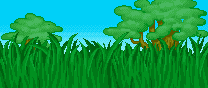 The Spear Thicket is an area consisting of tall, dark green blades of grass. Two trees are visible in the near background.