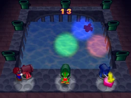 Spotlight Swim is a 1 vs. 3 mini-game that appears in Mario Party 3.