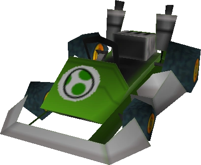 Once all cups in the Mirror Class have been completed, any racer can use this kart. Yoshi later got a Standard Kart M in Mario Kart Wii.
