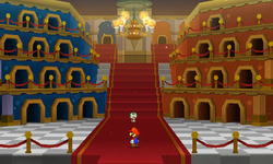 The Sticker Museum is a grand museum hidden underground in Decalburg in Paper Mario: Sticker Star. At first, the door leading to it is locked. Once the curator trapped under the fountain in Decalburg's plaza is rescued, he rewards Mario by revealing the Sticker Museum he has built with his "vast fortune". This area uses a remix of the Decalburg theme. The museum is separated into two sections, one half for Thing Stickers (the blue section on the left side) and the other for Battle Stickers (the orange section on the right side).