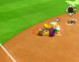 Super Dive is a fielding move that allows the character to dive a distance to catch a ball. Super Dive only sometimes activates, and it is signified by a sparkling light surrounding the fielder's baseball glove body and a sound effect.