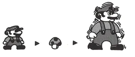 Super Mario is a form that Mario takes on when touching a Super Mushroom. The Super Mario form is named for the Super Mario series, and it makes its overall debut in the series' first installment, Super Mario Bros.. Other playable characters in general, mostly Luigi, can take on the Super form, in which case their name is preceded by the word "Super," such as Super Luigi, which also debuts in Super Mario Bros. given that it features Luigi as player two.