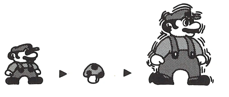 The Super Mario form turns a character larger, allowing them to withstand an extra hit, upon which they shrink back down to their Small form. The Super Mario form is generally associated with the Super Mario series, and otherwise serves as their standard appearance in other Mario-related media, given that the mechanic of changing from Small Mario to Super Mario and vice versa does not appear.