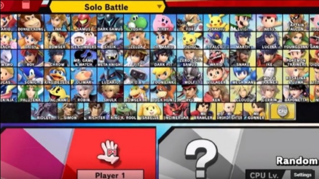 | Characters | Playable | Banjo and Kazooie • Bayonetta • Bowser • Bowser Jr. (Larry • Morton • Wendy • Iggy • Roy • Lemmy • Ludwig) • Byleth • Captain Falcon • Cloud • Corrin • Diddy Kong • Donkey Kong • Dr. Mario • Duck Hunt • Falco • Fox • Ganondorf • Greninja • Hero • Ice Climbers • Ike • Incineroar • Inkling • Isabelle • Jigglypuff • Joker • Kazuya • King Dedede • King K. Rool • Kirby • Link • Little Mac • Lucario • Lucas • Luigi • Mario • Marth (Lucinaε) • Mega Man • Meta Knight • Mewtwo • Mii (Mii Brawler • Mii Gunner • Mii Swordfighter) • Min Min • Mr. Game & Watch • Mythra • Ness • Olimar (Alph) • PAC-MAN • Palutena • Peach (Daisyε) • Pichu • Pikachu • Piranha Plant • Pit (Dark Pitε) • Pokémon Trainer (Charizard • Ivysaur • Squirtle) • Pyra • R.O.B. • Ridley • Robin • Rosalina & Luma • Roy (Chromε) • Ryu (Kenε) • Samus (Dark Samusε)• Sephiroth • Sheik • Shulk • Simon (Richterε) • Snake • Sonic • Sora • Steve (Alex • Enderman • Zombie) • Terry • Toon Link • Villager • Wario • Wii Fit Trainer • Wolf • Yoshi • Young Link • Zelda • Zero Suit Samus |