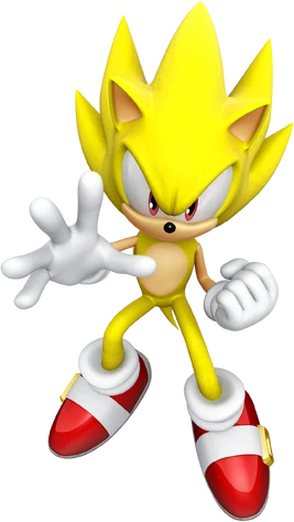 Super Sonic is a form that is taken by Sonic the Hedgehog when he collects the seven Chaos Emeralds. The power-up noticeably changes Sonic's fur to a golden yellow color, gives him the ability to levitate, and to soar in midair at fast speeds.