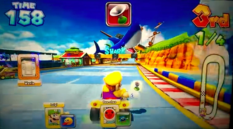 A large statue of a Sushi can be seen above the race courses Splash Circuit and Tropical Coast. Some Sushis can also be seen on signs in the background of Splash Circuit, in this game, their appearance is mainly limited to cameos.