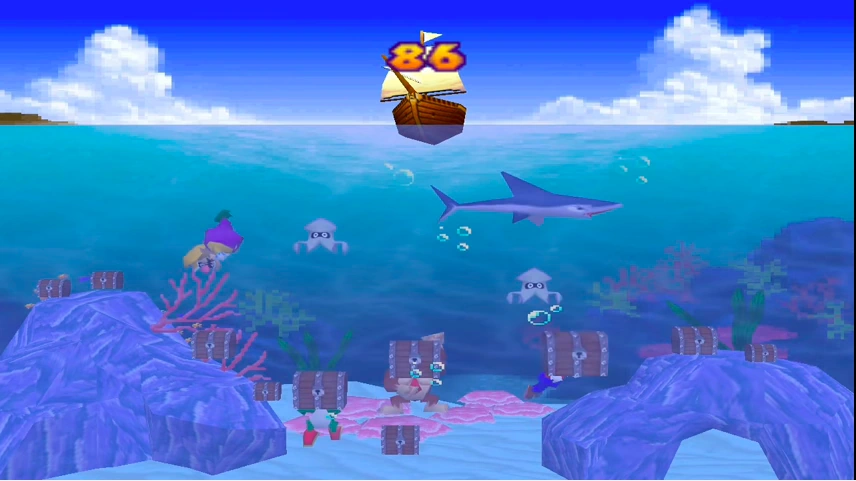 Sushis are seen in Mario Party, in this game, they only appear in the mini-game Treasure Divers as an obstacle where they can swim into a player causing him/her to lose their treasure chest setting them back by heaps, during the minigame, players must do whatever they can to avoid the swimming Sushi.
