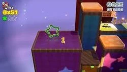 - Green Star 1: In a Mystery Box behind the starting location. The player must turn on four switch panels on the wall to earn the Green Star.