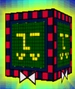 The InterChet is a 3-D block that is red and black in color. His "faces" all appear to have mustaches on them.
