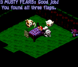 The Three Musty Fears are a trio of characters who appear in Super Mario RPG: Legend of the Seven Stars. They are only seen while Mario is asleep in Monstro Town. They urge Mario to find their flags in order to receive a prize.