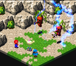 With Thunderbolt, Mallow can attack every enemy on the screen for electrical damage. This is useful when dealing with a group of enemies (especially those with a weakness to Thunder such as the Shysters). However, the move itself is a tad weak. A stronger version of Thunderbolt is called Shocker but it only strikes a single enemy for high damage.