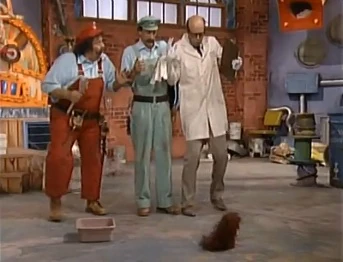 Inspector Klean continues his inspection and Clog jumps onto his head. Inspector Klean feels it but Luigi claims it's just a leaky pipe (which loses them another fifty points). Luigi finally manages to get the toupee away from Ratigator by throwing him a stick to fetch. Mario then grabs Inspector Klean so that they can remove clog and put his toupee on but Inspector Klean evicts them.