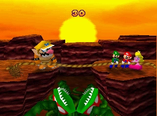 On Mini-Game Island, the player is the solo player in the Bowser Suit and must make the team players fall into the Piranha Plant's mouth.