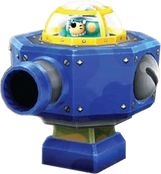 The Undergrunt Gunner later appears in Toy Time Galaxy as the second/final boss of that Galaxy, is the third/third-to-last boss of the Engine Room and is overall the sixteenth(seventeenth if counting the Mandibug Stack) He now uses the electric machine that now shoots electric energy balls that are slower then the water bubbles, but they can home in on the Player(s), the Cannon that causes damage and he is on a higher level making it difficult ground pounding his machine.
